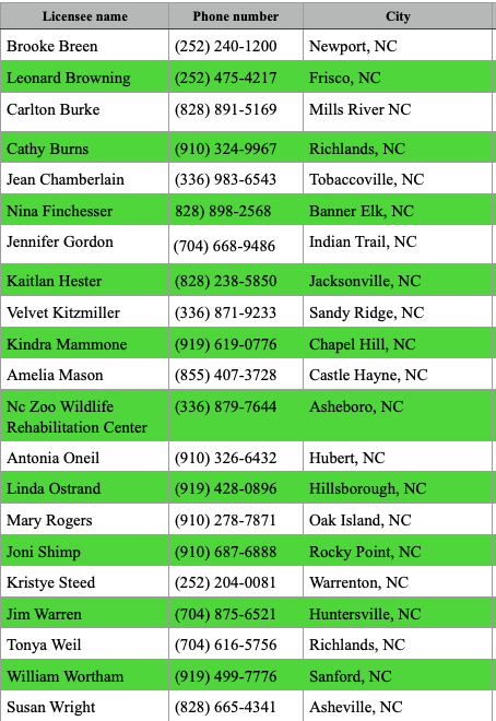 IF THE WILDLIFE YOU FOUND IS NOT A RAPTOR, PLEASE CONTACT NC WILDLIFE RESOURCES COMMISSION AT (919)707-0040 OR WWW.NCWILDLIFE.ORG